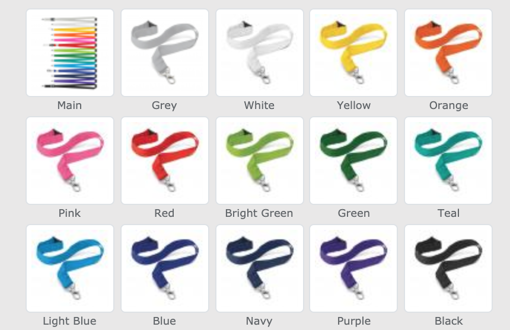 Build your own lanyard in three easy steps. Select one of the four polyester fabric sizes then choose the lanyard colour from the standard colour palette and finally choose the attachments. To simplify ordering the attachments you can choose our standard attachment configuration which includes a single metal clip and a safety clip or add any of our optional extra attachments as required. PMS colours are available on request for a minimum of 1000pcs. PMS colour matching is approximate. A production lead time of 15 working days applies to this product by air freight and larger orders can be sea freighted on request to reduce the freight cost.