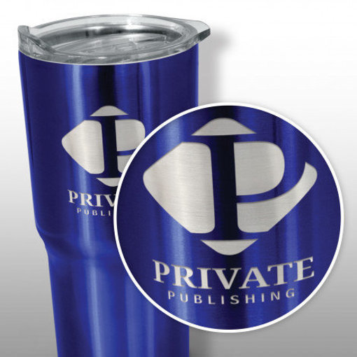 Large 550ml double wall, vacuum insulated stainless steel tumbler which will keep drinks hot for hours. It has a secure push on lid with a splashproof sliding closure. The coloured tumblers laser engrave to a shiny steel finish and the silver tumbler engraves to a natural etch. The tumbler is BPA-free and is presented in a black gift box. This product is not dishwasher safe and handwashing is recommended.