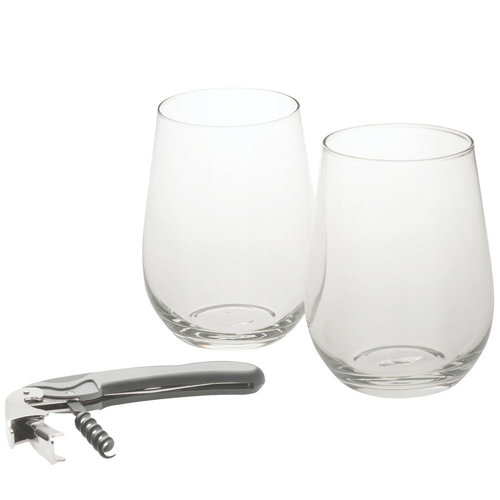 • Two piece wine glass set with waiters friend. This set is beautifully boxed in a black two piece gift box with foam insert. 450ml capacity.